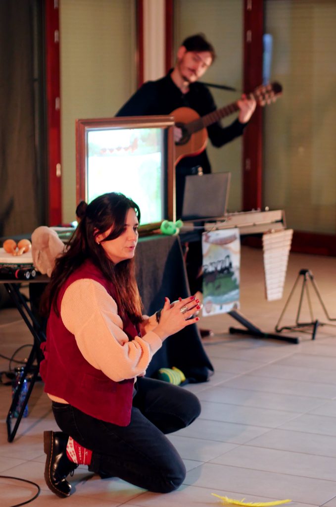 Accompagnés de différents instruments (guitare, piano, xylophone, percussions…) Anacrouse vous invite dans des voyages musicaux contés et chantés !